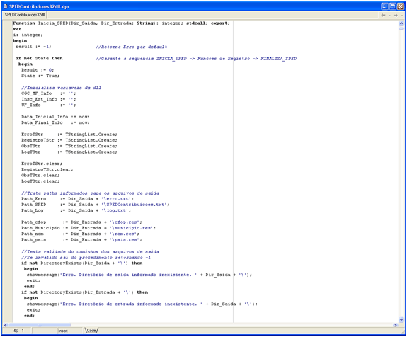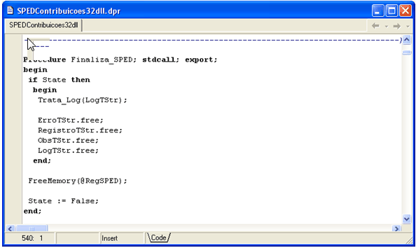 A função Finaliza_SPED, Figura05, indica à dll que o uso da mesma será finalizado e o processo de geração como um todo será concluído, deixando disponíveis ao usuário final o arquivo magnético do SPEDContribuicoes gerado e os demais arquivos de log de geração.