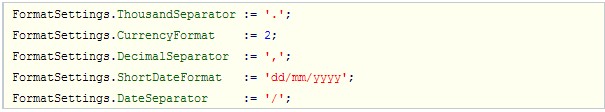 Isso também vale para formatos de valores monetários. Procure sempre manter o ponto como separador de milhares e a vírgula como separador decimal. Caso o banco de dados exija que o armazenamento seja no formato americano, cabe ao software realizar a conversão necessária para gravar e exibir corretamente os valores.