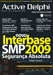 Neste artigo Felipe Santo apresenta o novo InterBase SMP 2009 no qual traz muitas novidades e recursos interessantes que irão facilitar o uso do produto, melhorar consideravelmente a performance e, principalmente, proporcionar mais segurança das aplicações baseadas nessa nova versão do já tão conhecido e utilizado InterBase. |